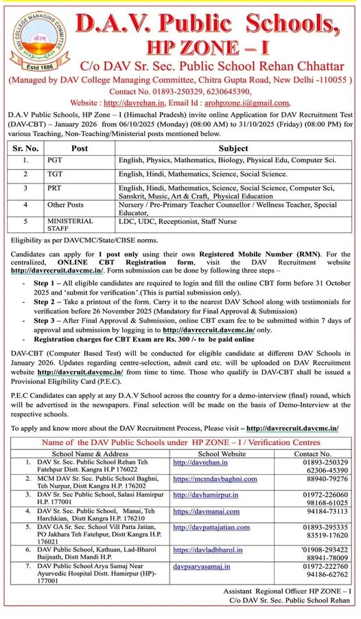 Official Website for DAV CBT Recruitment