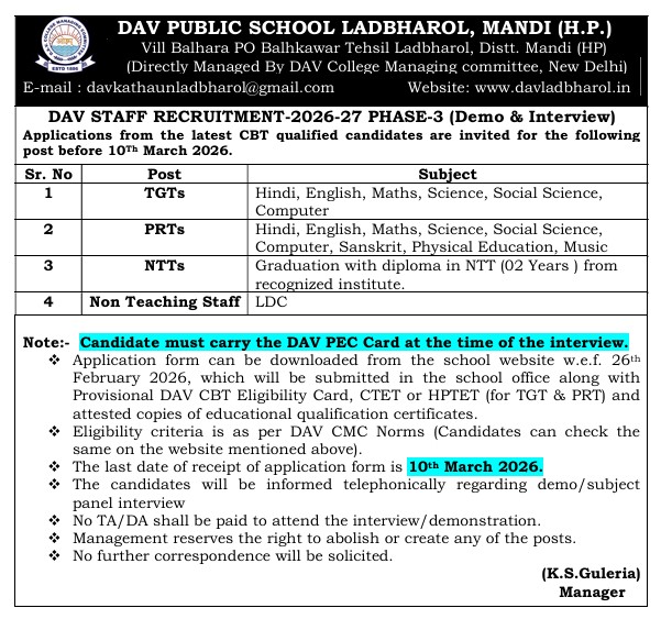 ✨ DAV Recruitment 2026–27 ✨